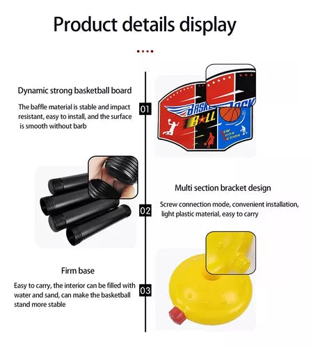 * Diseño portátil interior y exterior, fácil de mover a cualquier lugar, se puede colocar en la piscina, sótano, gimnasio, patio trasero y otros lugares interiores y exteriores, garantizará tiempo de entretenimiento para todos los amantes del baloncesto.*Aro de baloncesto ajustable para niños: hola a todos, echa un vistazo, nuestros botones de ajuste de este juego de baloncesto portátil ajustable se pueden ajustar a diferentes alturas para satisfacer a los niños de diferentes edades.*Juguetes de desarrollo para bebés: es bueno para que tu hijo desarrolle habilidades sociales, motoras y coordinación ojo-mano, y aumente sus intereses en el deporte, grandes juguetes deportivos para niños pequeños y niñas.*Juguete educativo para niños: este aro de baloncesto para niños sería el primer paso para ayudarles a aumentar el interés en el baloncesto, se divertirán y mantendrán la salud en el tiempo feliz del baloncesto, y cultivarán su pasatiempo.*Juega en cualquier lugar: es un aro de baloncesto flexible y cambiable para niños, puedes elegir colgarlo en diferentes lugares para adaptarse a la altura de cualquier persona.Para satisfacer tus diferentes necesidades de altura, el soporte de baloncesto es ajustable en altura, lo que permite a los niños de diferentes edades y niveles de habilidad jugar juegos de acuerdo a sus propias condiciones.El robusto soporte de baloncesto aporta más diversión y hace que tu baloncesto sea más cómodo.La estructura utiliza materiales de alta calidad para extender la durabilidad, y la estructura está hábilmente diseñada para ser duradera y se puede utilizar a diario.Diseño portátil interior y exterior, fácil de mover a cualquier lugar, se puede colocar en la piscina, sótano, gimnasio, patio trasero y otros lugares interiores y exteriores, garantizará tiempo de entretenimiento para todos los amantes del baloncesto.Para hacer mejor en uno de sus deportes más queridos a los niños les encanta el baloncesto, no hay que negarlo. Han sido expuestos a este deporte desde una edad muy joven y por el momento, son adolescentes, se convierten en expertos, con la capacidad de disparar cualquier cosa en una cesta. Naturalmente, como padre, querrías que tus hijos hagan mejor en uno de sus deportes más queridos. Y esto significaría que tendrías que comprar algunos de los mejores aros de baloncesto para niños y establecer una corte para que ellos practiquen.Estimula la habilidad atlética de los niños.Gran ayuda para los niños que crecen en lo físico y mental, el baloncesto puede estimular la capacidad atlética de los niños, el potencial de ejercicio, la capacidad potencial de toque, dificultad para calambres, avanzar y desafiarse a sí mismos.Color: rojo.Material: plástico.