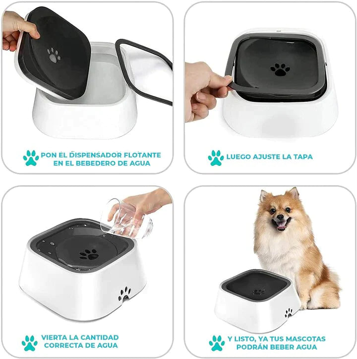 ¿Tu perro bebe salpicando mucha agua?Si la respuesta es Sí, ¡tenemos la solución para ti! Este tazón de agua es a prueba de salpicaduras adecuado para todos los perros y gatos. Di adiós a los suelos desordenados y a las limpiezas frecuentes con este invento. Con un ligero toque, el bebedero para perros y gatos liberará agua para llenar el comedero para mascotas debido al diseño flotante. Capaz de contener hasta 1500 ml de agua.Equipado con un plato flotante que ralentiza la tasa de ingesta de agua de tu mascota, para que pueda aprovechar al máximo su agua fresca. Simple y Fácil de usar! ¡Beneficios clave y razones por las que lo necesitas! A prueba de salpicaduras: la tira de borde resistente al agua y el diseño dual del disco flotante pueden evitar que el agua se desborde, manteniendo el suelo seco y ordenado en todo momento.Alimentador de agua lento: el diseño de disco flotante ajustable automáticamente reduce la velocidad de bebida de su mascota. Cuando la lengua de tu mascota toca el disco flotante, se hunde y el agua va subiendo.Mantenga el agua limpia: el diseño soldado con disco separable de 2 piezas ayuda a evitar que el polvo, la suciedad y el pelo de las mascotas caigan al agua y afecten la calidad del agua.Capacidad muy grande: con unas dimensiones de 8,8 x 7,2 x 2 pulgadas, el tazón tiene una capacidad bastante grande y práctica, suficiente para que tus peludos beban todo el día.