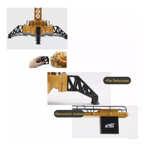 Grúa de juguete 128 cm Grúa de construcción torre de altura Eliminar control interior exteriorDescripción:Tipo: Grúa de juguete Material: PlásticoColor: amarillo+negro Batería de control remoto: 4 * AA (no incluida)Carga: aproximadamente 250 gLongitud del cable remoto: aprox. 120 maltura: aprox. 73 cm/1 m/1,28 mTamaño del paquete: 60 x 26,5 x 17,7 cm aprox.Peso: aproximadamente 1550 g(1 cm = 10 mm = 0,39 pulgadas).Detalles de medición en la imagen adjunta.El paquete incluye:1 grúa de juguete con mando a distancia.Características:100% nuevo.Apto para la construcción. modelos, modelo de mesa de arena, modelos de trenes, modelo de juguete, diseño de escena, paisaje exterior,artesanía realista y excelente mano de obra.Enseñanza estudiantil, libros de texto de psicología, micropaisajismo, miniatura coleccionable.Función: Girar a la izquierda y a la derecha, puede levantarse y caer. Gira 360 grados.