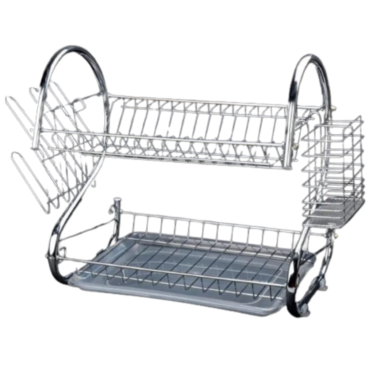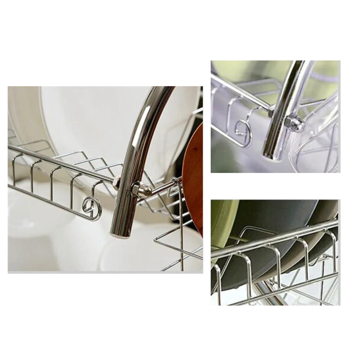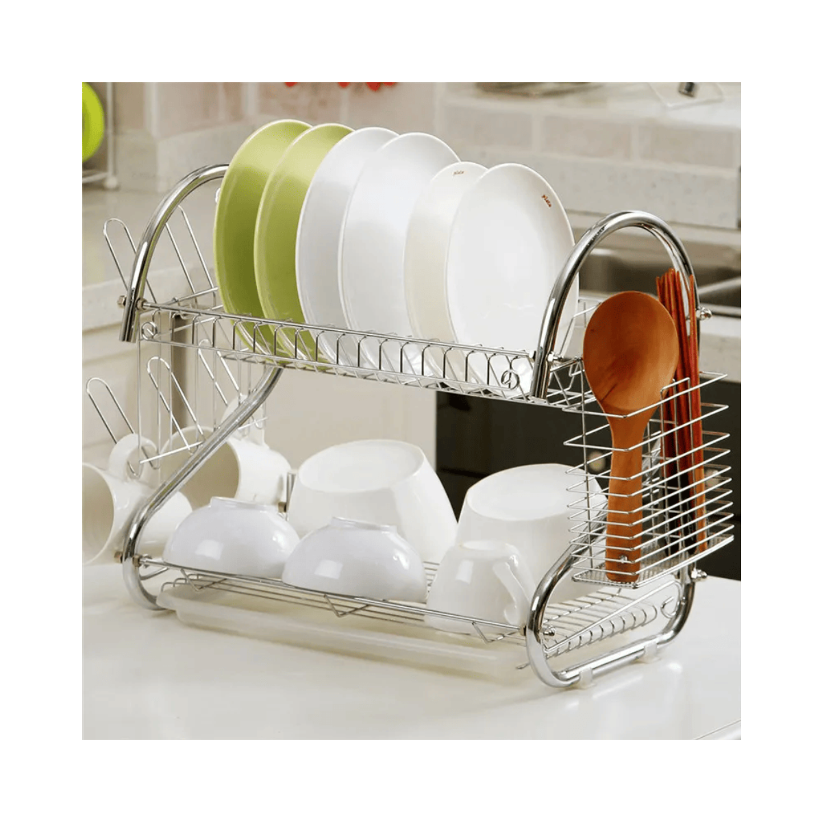 Optimiza tu espacio de cocina y mantiene tus utensilios secos con nuestro Secador de Platos de 2 Niveles de Acero Inoxidable. Diseñado con materiales duraderos para garantizar su longevidad y la higiene de tus utensilios de cocina. Descubre la practicidad de un secador que cuida de tus platos con estilo.- Función de Ventilación en el Espacio del Piso: Este secador de platos cuenta con una función de ventilación en el espacio del piso, asegurando una circulación de aire adecuada para un secado eficiente. Tus platos y utensilios se mantienen secos de manera uniforme.- Soporte de Pierna (Goma) Antideslizante: Equipado con soportes de pierna antideslizantes de goma, el secador se mantiene estable en la encimera. Evita deslizamientos accidentales y proporciona una base segura para tus utensilios recién lavados.- Fácil de Limpiar: La facilidad de mantenimiento es clave. Este secador es fácil de limpiar gracias a su diseño desmontable. Garantiza una higiene continua y simplifica el proceso de cuidado del producto.- Materiales Ecológicos: Comprometidos con la sostenibilidad, este secador está fabricado con materiales ecológicos. No solo es funcional, sino que también refleja nuestro compromiso con la responsabilidad ambiental.Soporte con Porta Cucharas: Maximiza la utilidad con el soporte incorporado y la configuración de porta cucharas. Organiza tu espacio de secado de manera eficiente, proporcionando un lugar específico para utensilios más pequeños.