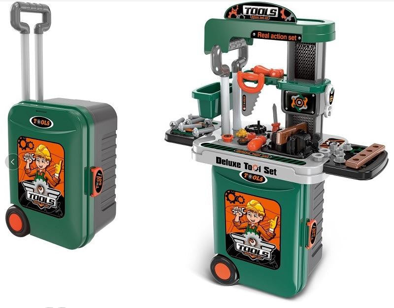 ¡El SET DE HERRAMIENTAS es el último taller de juguetes para los pequeños trabajadores de la construcción! El uso de herramientas realistas mejorará las habilidades motoras finas de su hijo. ¡Con tantas formas de jugar, los jóvenes trabajarán duro durante horas para divertirse construyendo!Mire a su aspirante a constructor mejorar su oficio mientras construye varias creaciones con este banco de trabajo, juego de herramientas y maleta. El juego 3 en 1 ayuda a desarrollar la creatividad y explora la imaginación, y permite a los niños imaginarse trabajando con herramientas eléctricas reales.Banco de trabajo : con un montón de herramientas y accesorios de simulación, el taller ofrece muchas maneras para que los aspirantes a constructores elaboren nuevas creaciones después de construir el banco con las herramientas y el hardware incluidos.Caja de herramientas : La fantástica caja de herramientas viene con una gran variedad de herramientas. ¡Hay toneladas de accesorios de herramientas para horas de diversión!Maleta: es fácil tirar de la maleta sobre la alfombra cuando los niños fingen ser ingenieros. Es un juego de herramientas para niños y un contenedor de almacenamiento de juguetes. Este conjunto fomenta la imaginación, la creatividad y ayuda a desarrollar la coordinación ojo-mano y las habilidades motoras finas.Dimensiones: 50x21x66cm