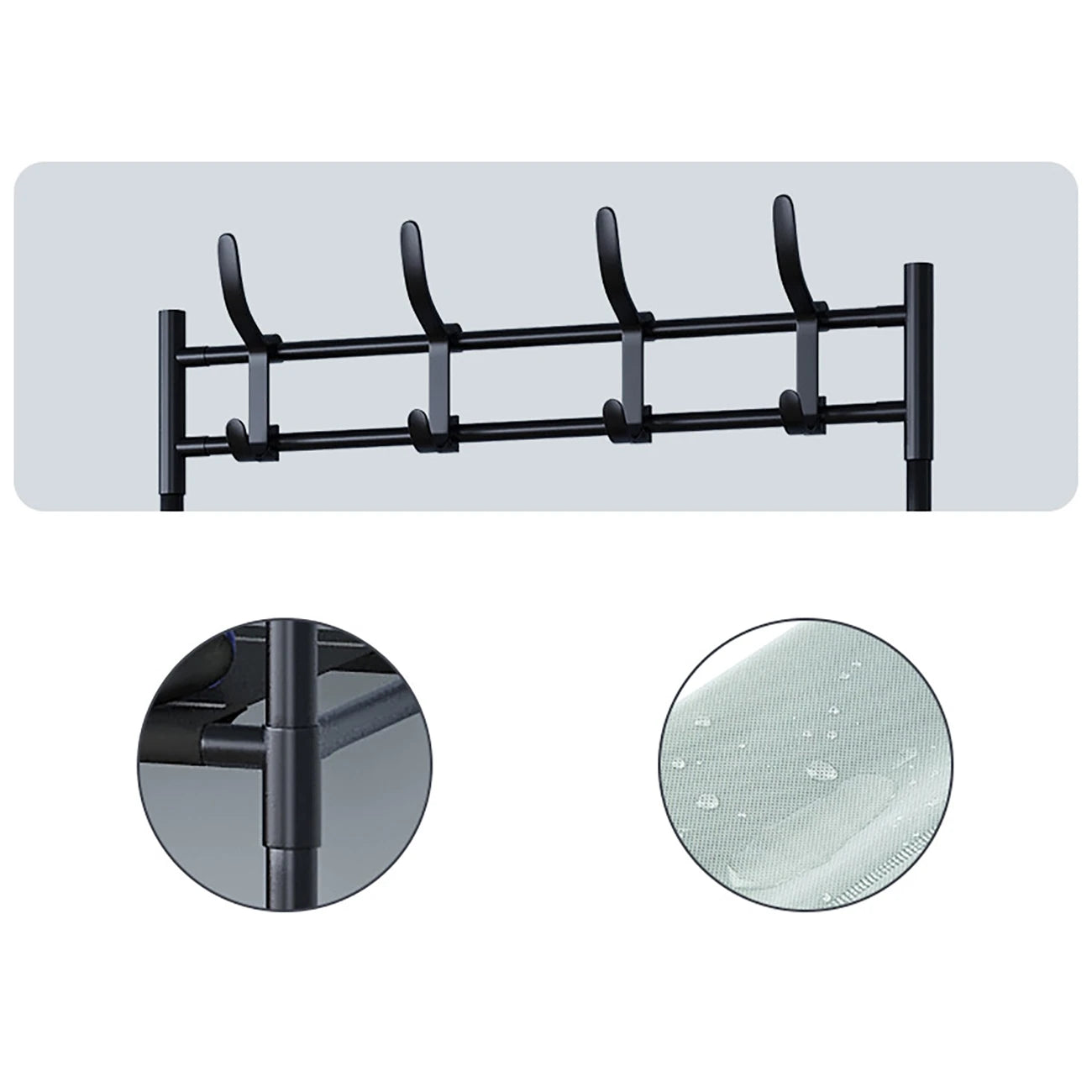 Características principales/puntos de venta:1. Diseño de múltiples capas para un almacenamiento máximo2. Construcción de acero impermeable y a prueba de óxido3. Almohadillas antideslizantes en los pies para mayor estabilidad4. Uso versátil para ropa, zapatos y sombreros5. Montaje fácil y diseño que ahorra espacioDescripción:¡Presentamos la solución definitiva de almacenamiento para tu armario - nuestro Perchero para Abrigos Perchero para Ropa Armario de Almacenamiento de Piso! Fabricado con tubos de acero de alta calidad, impermeables y con pintura a prueba de óxido, este perchero de múltiples capas ofrece un amplio espacio para almacenar toda tu ropa y accesorios. El diseño elevado de los postes y las almohadillas antideslizantes en los pies lo hacen perfecto para su uso en baños, asegurando que tus artículos se mantengan secos y libres de humedad. Con una elegante opción de color negro o blanco, este perchero de piso es imprescindible en cualquier hogar. Actualiza tu solución de almacenamiento con nuestro producto premium y más vendido, disponible por tiempo limitado.